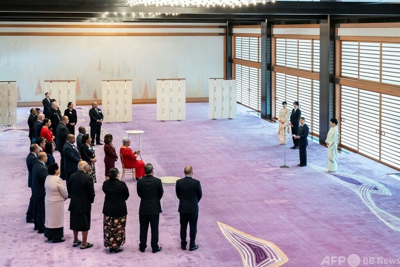 【7月18日 AFP】天皇、皇后両陛下は17日、日本と太平洋の島しょ国・地域による「第10回太平洋・島サミット(PALM10)」のために来日した各国・地域の首脳らを皇居・宮殿に招き、茶会を催された。