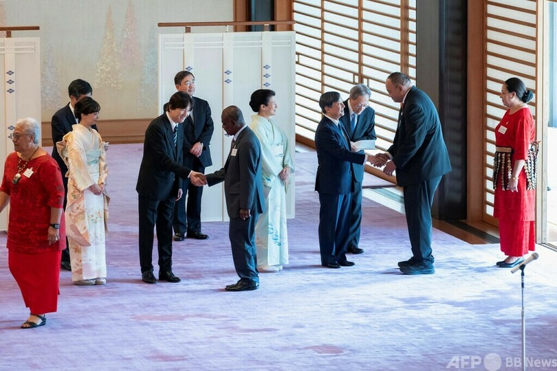 【7月18日 AFP】天皇、皇后両陛下は17日、日本と太平洋の島しょ国・地域による「第10回太平洋・島サミット(PALM10)」のために来日した各国・地域の首脳らを皇居・宮殿に招き、茶会を催された。