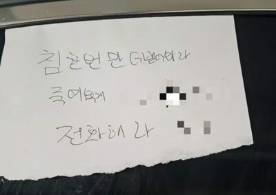 韓国・迷惑駐車のBMW「この車に唾を吐くと殺すよ」の迷惑メモ
