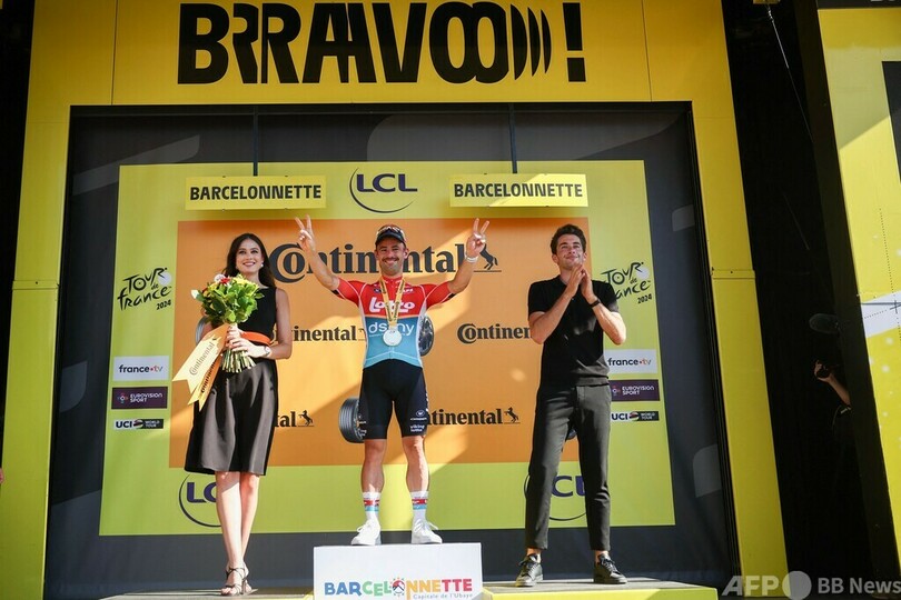 【7月19日 AFP】自転車ロードレース、ツール・ド・フランス(2024 Tour de France)は18日、第18ステージ(ギャップからバルスロネット、179.5キロメートル)が行われ、ロット・デスティニー(Lotto Dstny)のヴィクトール・カンペナールツ(Victor Campenaerts、ベルギー)が区間優勝を果たした。