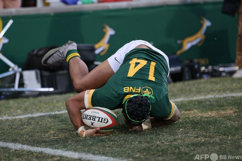 南アフリカでは他に代表デビュー戦となったジャンヘンドリック・ウェッセルズ(Jan-Hendrik Wessels)、ペプシ・ブテレジ(Phepsi Buthelezi)、ベンジェイソン・ディクソン(Ben-Jason Dixon)、クアン・ホーン(Quan Horn)、アンドレヒューゴ・ベンター(Andre-Hugo Venter)に加え、カートリー・アレンドセ(Kurt-Lee Arendse)とルカニョ・アム(Lukhanyo Am)にトライが生まれた。(c)AFP