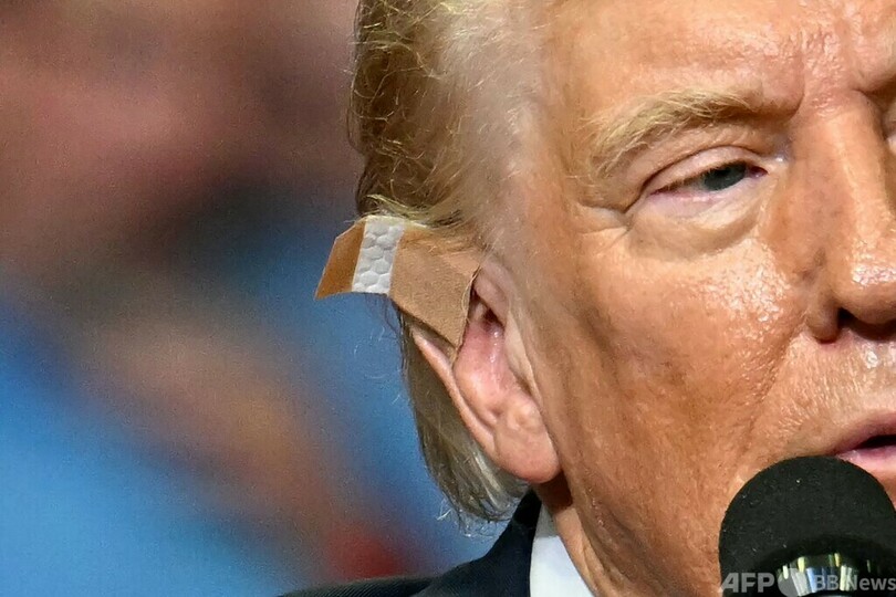 トランプ氏はこの日、暗殺未遂事件で負傷した右耳上部を肌色のばんそうこうで覆っていた。