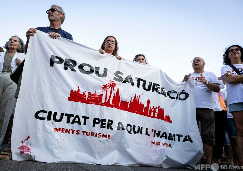 観光大国スペインではこのところ反観光デモが相次いでいる。今回のデモは、同市のあるマジョルカ(Mallorca)島やメノルカ(Menorca)島、イビサ(Ibiza)島といった人気観光地を含む地中海のバレアレス諸島で、過剰な観光客数に制限を設けることを求める約80の組織やグループが呼び掛けた。