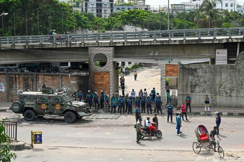 ダッカではデモの激化を受け、先週末から夜間外出禁止令が出ている。また当局は18日以降、全土でインターネットを遮断している。