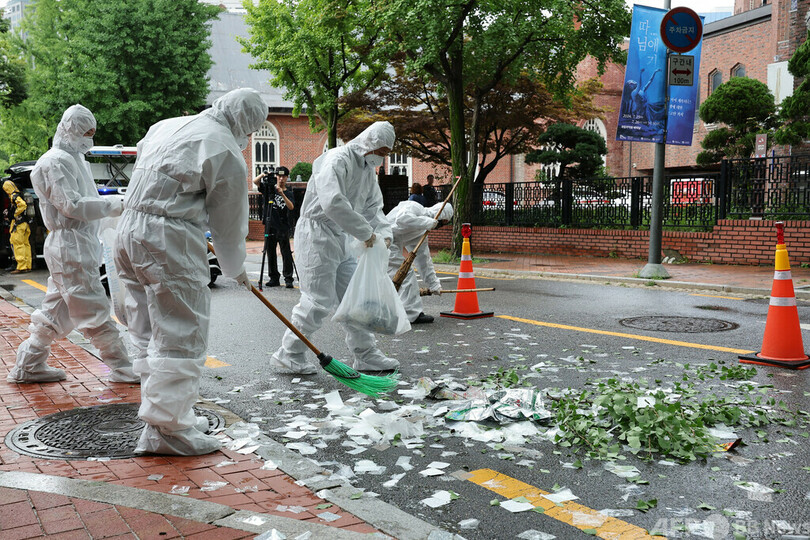 北朝鮮は5月以降、韓国に向けて多数のごみ風船を飛ばしている。だが、兵士が厳重に警備し、飛行禁止区域に設定されている大統領府の敷地内に落下したのは今回が初。