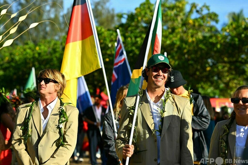 スポーツ スポーツ その他 パリ五輪 パリ五輪:一般ニュース パリ五輪開会式、サーフィン会場のタヒチでも 2024年7月27日 5:10 発信地:チョープー/フランス領ポリネシア このニュースをシェア ‹ › ❮ 5/12 ❯ サーフィン競技の会場となるフランス領ポリネシアのタヒチ島チョープーで、パリ五輪の開会式に臨む南アフリカのジョーディー・スミス(右、2024年7月26日撮影)。(c)Jerome BROUILLET / AFP 画像作成中 ! 【7月27日 AFP】パリ五輪の開会式が26日、サーフィン競技の会場となる仏領ポリネシアのタヒチ(Tahiti)島チョープー(Teahupoo)でも行われ、出場選手が入場行進した。(c)AFP 特集:パリ五輪 フランスの首都パリで、100年ぶりとなる夏季五輪が2024年7月26日から8月11日までの日程で開催されます。 スポーツ その他 一覧へ> メディア・報道関係・法人の方向け 写真・動画 購入のお問合せ>