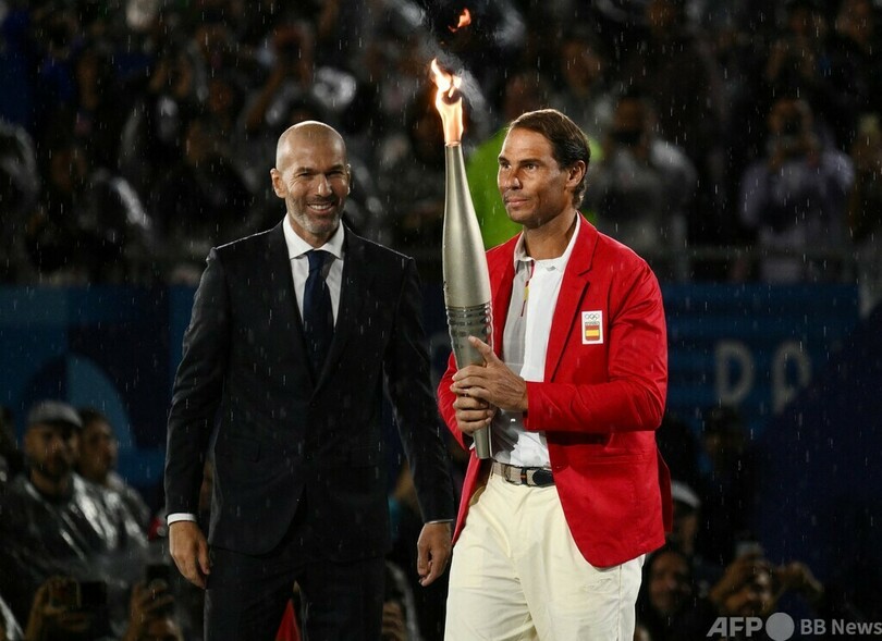聖火は元男子サッカーのジネディーヌ・ジダン(Zinedine Zidane)氏や男子テニスのラファエル・ナダル(Rafael Nadal、スペイン)らのリレーを経て、地元出身の陸上女子の名選手マリージョゼ・ペレク(Marie-Jose Perec)氏と男子柔道のテディ・リネール(Teddy Riner)が聖火台に点火。聖火台は気球として空中へ上がった。