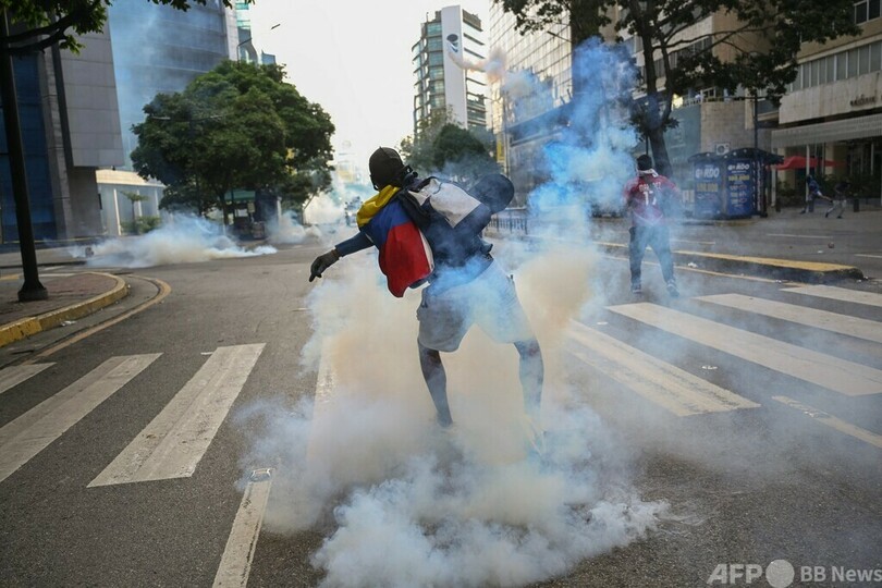 【7月30日 AFP】南米ベネズエラで29日、前日に投開票が行われた大統領選でニコラス・マドゥロ(Nicolas Maduro)大統領が再選したと発表されたことに抗議する大規模デモが行われた。治安部隊は催涙ガスやゴム弾を使用して鎮圧を試みた。マドゥロ氏の勝利をめぐっては、野党や国際社会からも疑問視されている。