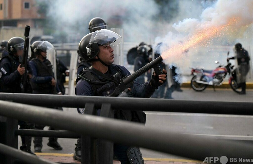 【7月30日 AFP】南米ベネズエラで29日、前日に投開票が行われた大統領選でニコラス・マドゥロ(Nicolas Maduro)大統領が再選したと発表されたことに抗議する大規模デモが行われた。治安部隊は催涙ガスやゴム弾を使用して鎮圧を試みた。マドゥロ氏の勝利をめぐっては、野党や国際社会からも疑問視されている。