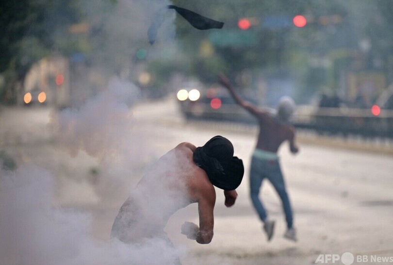 AFP記者は、治安部隊が催涙ガスやゴム弾を発射し、デモ隊が投石で応酬する様子を目撃した。