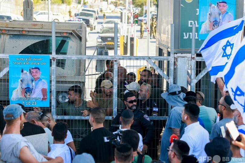 兵士が収容された北部クファルヨナのベイト・リド基地にも民間人が集まり、拘束に対する抗議デモを行った。