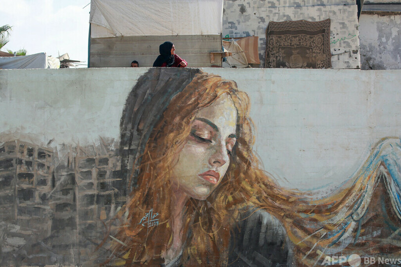 【今日の1枚】避難民に寄り添う壁画の少女 パレスチナ