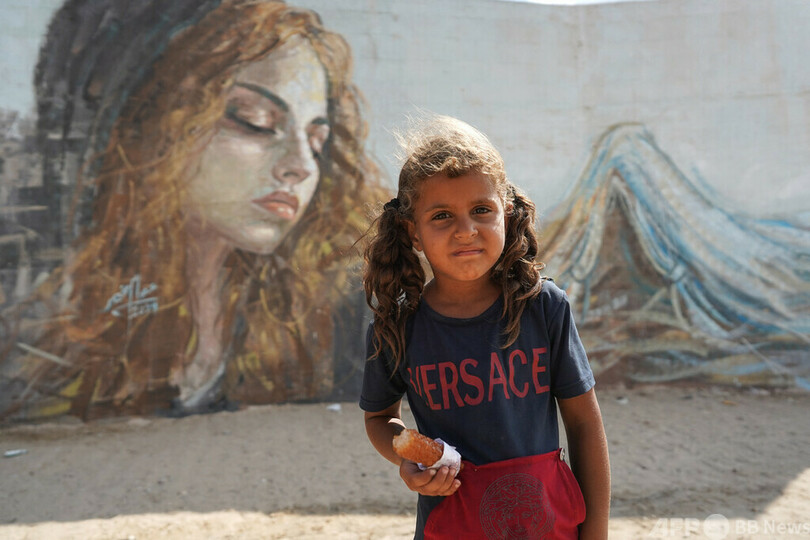 【今日の1枚】避難民に寄り添う壁画の少女 パレスチナ