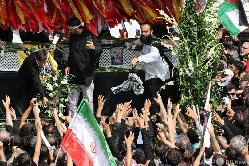 AFP特派員によると、葬儀が行われたテヘラン市中心部のテヘラン大学(Tehran University)には、ハニヤ氏の写真やパレスチナ旗を手にした人々が葬列の出発を前に多数集まった。