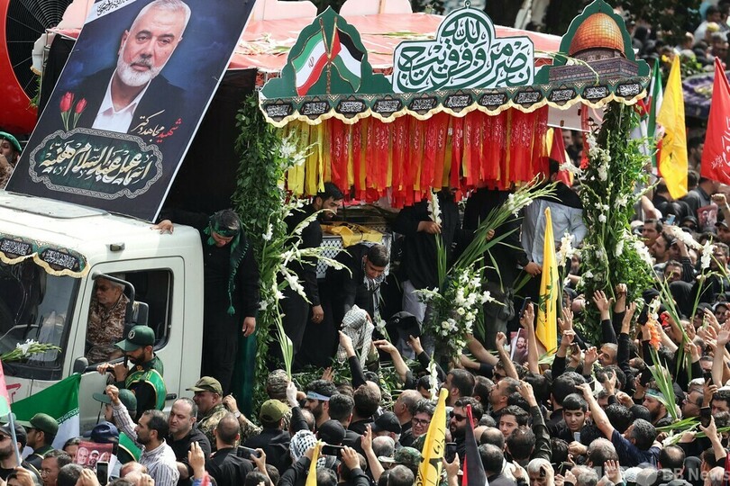 AFP特派員によると、葬儀が行われたテヘラン市中心部のテヘラン大学(Tehran University)には、ハニヤ氏の写真やパレスチナ旗を手にした人々が葬列の出発を前に多数集まった。