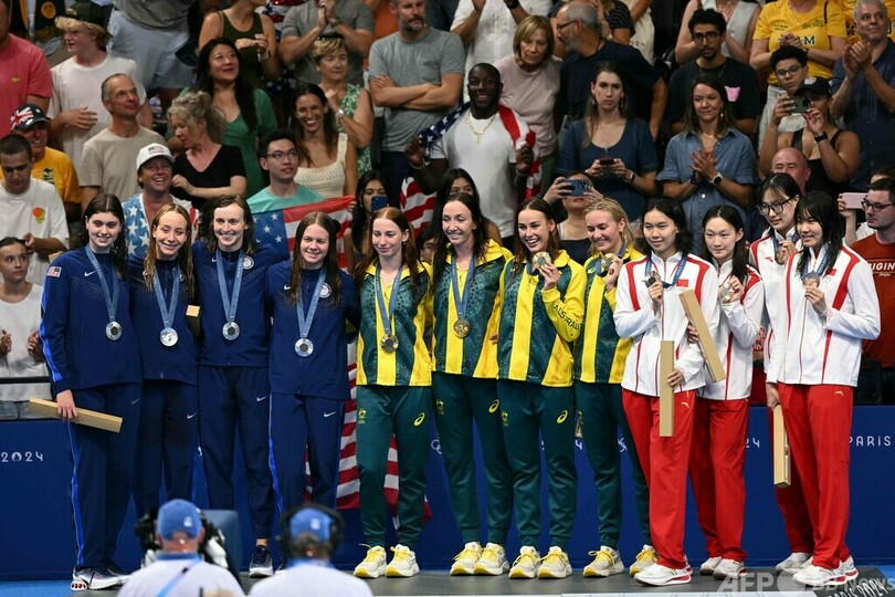 女子4×200メートル自由形リレーはオーストラリアが五輪記録を更新する7分38秒08で優勝し、今大会競泳5個目の金メダルを手にした。