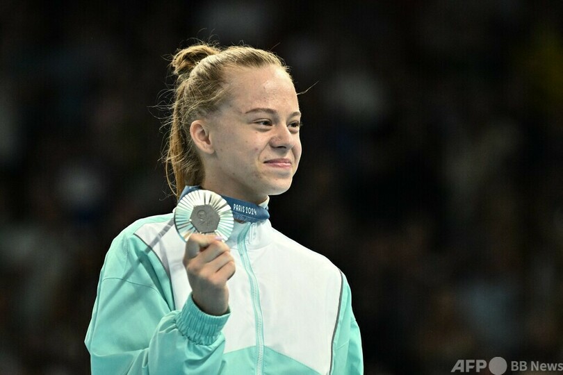 ベラルーシのAIN選手がパリ五輪初メダル、トランポリン女子で銀