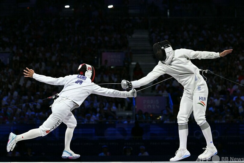スポーツ スポーツ その他 パリ五輪 パリ五輪:競技 パリ五輪:その他 競技 日本人選手 日本が銀メダル パリ五輪フェンシング男子エペ団体 2024年8月3日 5:17 発信地:パリ/フランス このニュースをシェア ‹ › ❮ 9/10 ❯ パリ五輪、フェンシング男子エペ団体決勝。ハンガリーのゲルゲイ・シクローシ(右)と対戦する加納虹輝(2024年8月2日撮影)。(c)Fabrice COFFRINI / AFP 画像作成中 ! 【8月3日 AFP】パリ五輪は2日、フェンシング男子エペ団体決勝が行われ、日本はハンガリーに敗れて銀メダルとなった。東京五輪で優勝した日本の連覇はならなかった。(c)AFP 特集:パリ五輪 フランスの首都パリで、100年ぶりとなる夏季五輪が2024年7月26日から8月11日までの日程で開催されます。 スポーツ その他 一覧へ> メディア・報道関係・法人の方向け 写真・動画 購入のお問合せ>