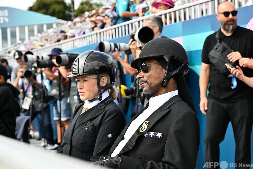 【8月4日 AFP】パリ五輪は3日、馬術・馬場馬術団体グランプリ決勝が行われ、米ラッパーのスヌープ・ドッグ(Snoop Dogg)さんがライダー(馬術選手)に扮(ふん)して会場のベルサイユ宮殿(Chateau de Versailles)に登場した。