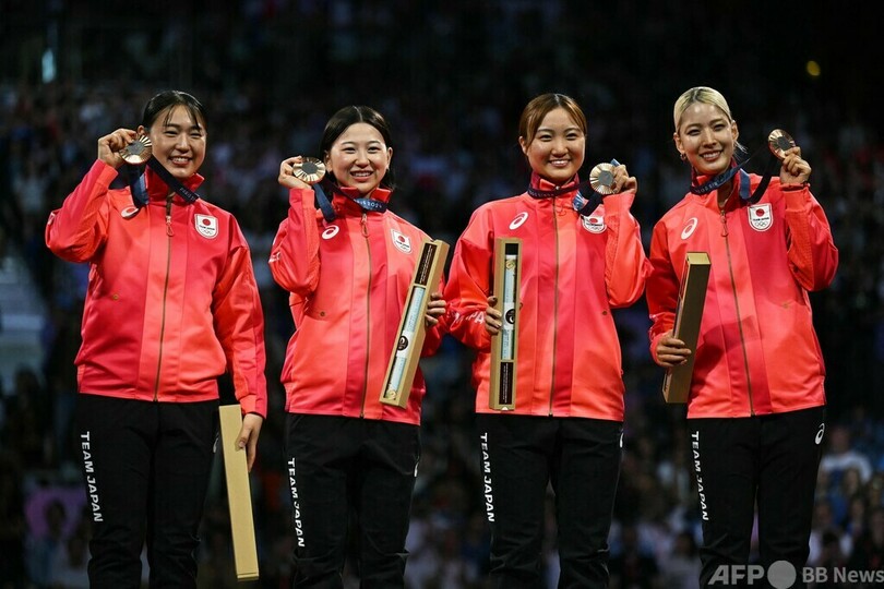 スポーツ スポーツ その他 パリ五輪 パリ五輪:競技 パリ五輪:その他 競技 日本人選手 日本が銅メダル パリ五輪フェンシング女子サーブル団体 2024年8月4日 4:16 発信地:パリ/フランス このニュースをシェア ‹ › ❮ 1/12 ❯ パリ五輪、フェンシング女子サーブル団体。表彰式で銅メダルを手に喜ぶ(左から)福島史帆実、高嶋理紗、尾崎世梨、江村美咲(2024年8月3日撮影)。(c)Fabrice COFFRINI / AFP 画像作成中 ! 【8月4日 AFP】パリ五輪は3日、フェンシング女子サーブル団体3位決定戦が行われ、日本はフランスを下して銅メダルを獲得した。(c)AFP 特集:パリ五輪 フランスの首都パリで、100年ぶりとなる夏季五輪が2024年7月26日から8月11日までの日程で開催されます。 スポーツ その他 一覧へ> メディア・報道関係・法人の方向け 写真・動画 購入のお問合せ>