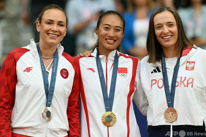 鄭が中国勢初のシングルス金メダル獲得 パリ五輪テニス女子