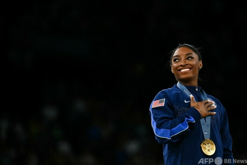 バイルスはリオデジャネイロ五輪の4個と合わせて、五輪で通算7個の金メダルを獲得している。この後も5日に種目別の平均台とゆかに出場予定で、さらに二つを加える可能性がある。(c)AFP/Emmeline MOORE