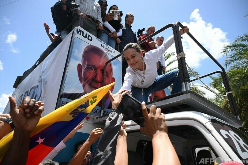 【8月4日 AFP】南米ベネズエラで3日、野党指導者で、逮捕の恐れから潜伏していたマリア・コリナ・マチャド(Maria Corina Machado)氏が支持者の前に姿を現し、「私たちはかつてないほど強くなった」と訴えかけた。7月28日実施の大統領選でニコラス・マドゥロ(Nicolas Maduro)大統領の再選が発表されたことへの抗議が続いており、マドゥロ氏は「大統領職を奪取する」試みだと非難した。
