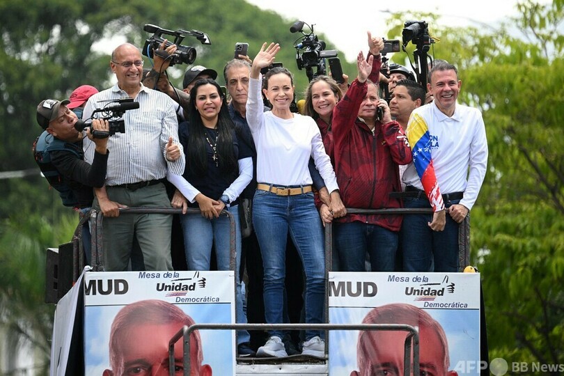 【8月4日 AFP】南米ベネズエラで3日、野党指導者で、逮捕の恐れから潜伏していたマリア・コリナ・マチャド(Maria Corina Machado)氏が支持者の前に姿を現し、「私たちはかつてないほど強くなった」と訴えかけた。7月28日実施の大統領選でニコラス・マドゥロ(Nicolas Maduro)大統領の再選が発表されたことへの抗議が続いており、マドゥロ氏は「大統領職を奪取する」試みだと非難した。