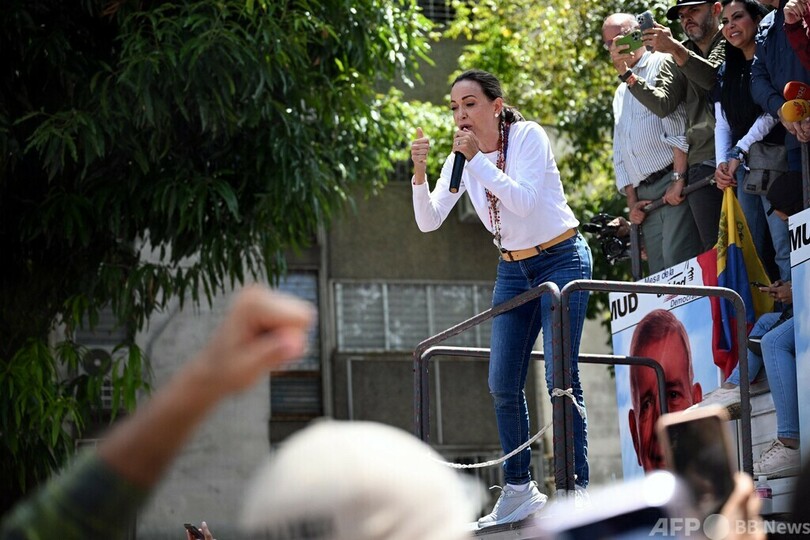 【8月4日 AFP】南米ベネズエラで3日、野党指導者で、逮捕の恐れから潜伏していたマリア・コリナ・マチャド(Maria Corina Machado)氏が支持者の前に姿を現し、「私たちはかつてないほど強くなった」と訴えかけた。7月28日実施の大統領選でニコラス・マドゥロ(Nicolas Maduro)大統領の再選が発表されたことへの抗議が続いており、マドゥロ氏は「大統領職を奪取する」試みだと非難した。