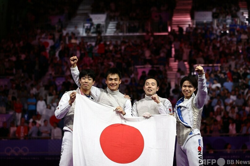 スポーツ スポーツ その他 パリ五輪 パリ五輪:競技 パリ五輪:その他 競技 日本人選手 日本が金メダル獲得 パリ五輪フェンシング男子フルーレ団体 2024年8月5日 5:32 発信地:パリ/フランス このニュースをシェア ‹ › ❮ 11/14 ❯ パリ五輪、フェンシング男子フルーレ団体決勝、イタリア対日本。金メダルを獲得し、日の丸を手に喜ぶ日本の選手(2024年8月4日撮影)。(c)FRANCK FIFE / AFP 画像作成中 ! 【8月5日 AFP】パリ五輪は4日、フェンシング男子フルーレ団体決勝が行われ、日本はイタリアを下して金メダルを獲得した。(c)AFP 特集:パリ五輪 フランスの首都パリで、100年ぶりとなる夏季五輪が2024年7月26日から8月11日までの日程で開催されます。 スポーツ その他 一覧へ> メディア・報道関係・法人の方向け 写真・動画 購入のお問合せ>
