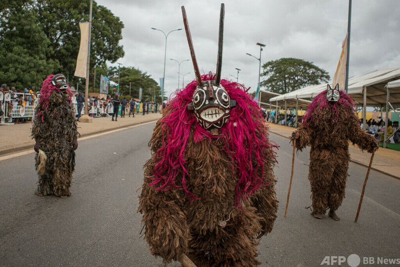 【今日の1枚】伝統仮面で行進、ブードゥーの「ザンベト様」 ベナン