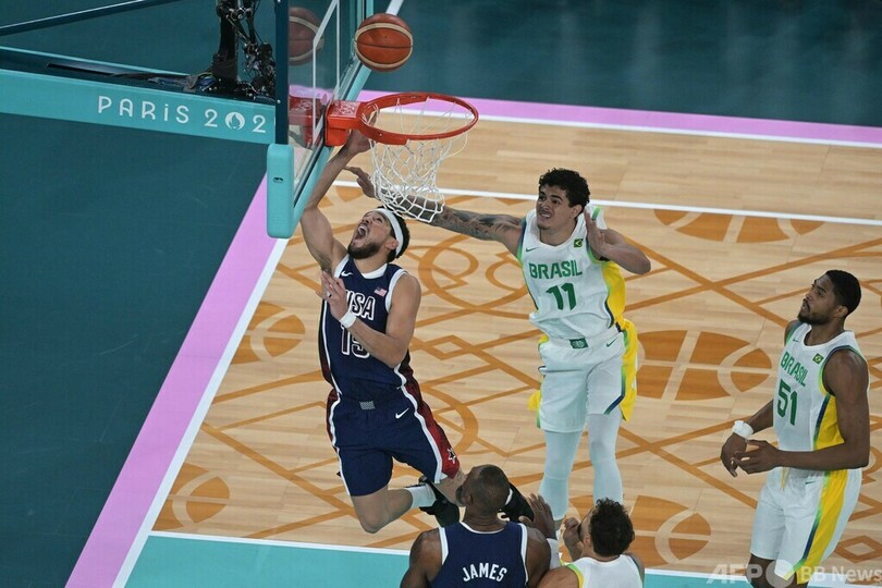 【8月7日 AFP】パリ五輪は6日、バスケットボール男子準々決勝が行われ、米国は122-87でブラジルに圧勝してセルビアとの準決勝に進出した。