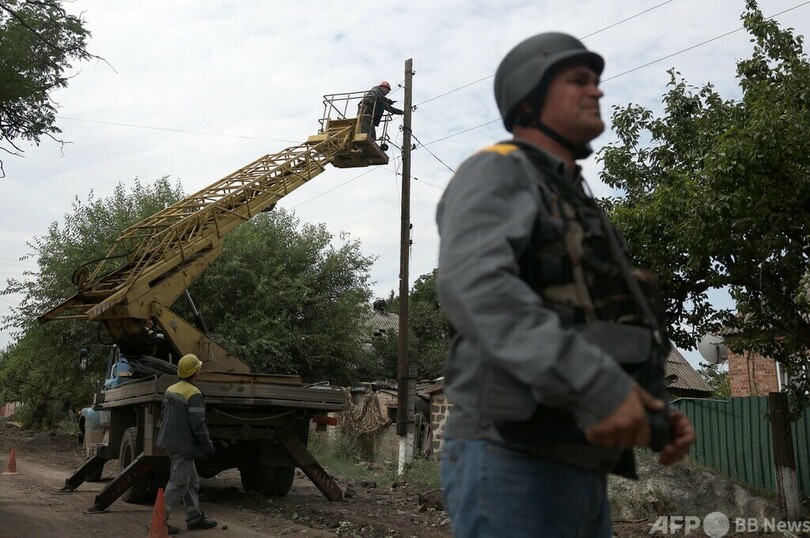 【9月26日 AFP】ウクライナ東部ドネツク(Donetsk)州のポクロウシク(Pokrovsk)戦線までわずか数キロの集落で、ビタリー・アシネンコさん(46)は同僚が電線工事を行う様子を不安げに見守っていた。