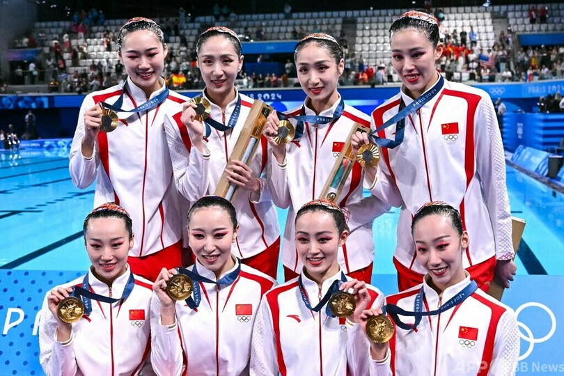 【8月8日 AFP】パリ五輪は7日、アーティスティックスイミング(AS)のチーム・アクロバティックルーティン(AR)が行われ、テクニカルルーティン(TR)とフリールーティン(FR)との合計により、中国が金メダルを獲得した。(c)AFP