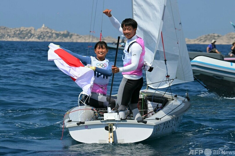 【8月9日 AFP】パリ五輪は8日、セーリング混合470級のメダルレースが行われ、岡田奎樹(Keiju Okada)/吉岡美帆(Miho Yoshioka)組が銀メダルを獲得した。(c)AFP