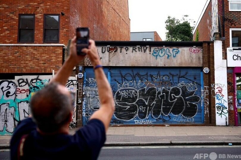 【8月9日 AFP】英国の覆面ストリートアーティスト、バンクシー(Banksy)の新作が4日連続でロンドン市内に登場したが、1時間もたたずに持ち去られた。盗まれたとみられている。