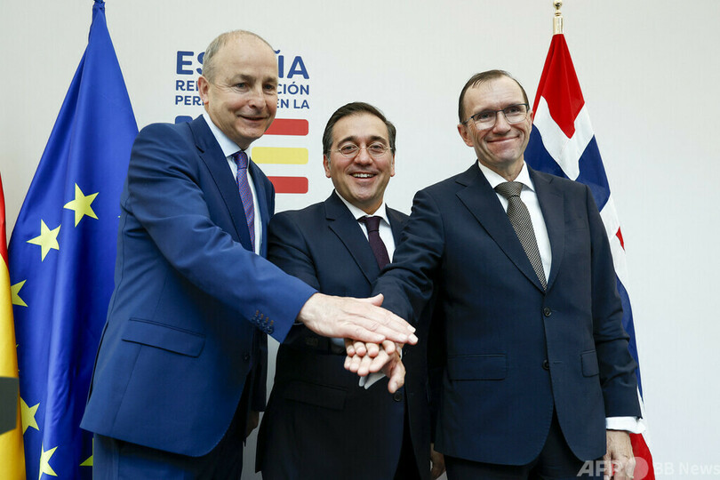 ノルウェー、スペイン、アイルランドの欧州3か国は5月、パレスチナを国家として正式に承認した。これに反発したイスラエルは在エルサレムのスペイン領事館に対し、6月1日からパレスチナ人向けの領事業務を停止するよう通告した。(c)AFP