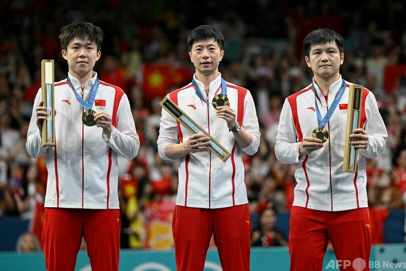 卓球大国の中国は、これで男女シングルスと混合ダブルスに加えて男子団体も制し、全種目制覇に王手をかけた。10日に行われる最終種目の女子団体決勝では、日本と対戦する。男子団体の3位決定戦はフランスが3-2で日本を破り、銅メダルを獲得した。(c)AFP