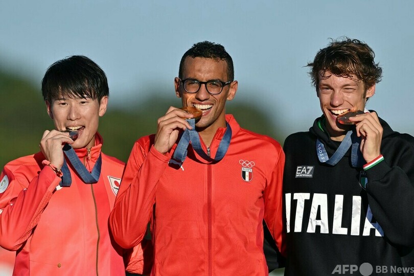 スポーツ スポーツ その他 パリ五輪 パリ五輪:競技 パリ五輪:その他 競技 日本人選手 佐藤大宗が近代五種男子で銀メダル パリ五輪 2024年8月11日 3:36 発信地:パリ/フランス このニュースをシェア ‹ › ❮ 1/3 ❯ パリ五輪、近代五種男子。表彰式に臨む(左から)銀メダルの佐藤大宗、金メダルを獲得したエジプトのアフマド・ゲンディ、イタリアのジョルジョ・マラン(2024年8月10日撮影)。(c)Miguel MEDINA / AFP 画像作成中 ! 【8月11日 AFP】パリ五輪は10日、近代五種男子決勝が行われ、佐藤大宗(Taishu Sato)が銀メダルを獲得した。(c)AFP 特集:パリ五輪 フランスの首都パリで、100年ぶりとなる夏季五輪が2024年7月26日から8月11日までの日程で開催されます。 スポーツ その他 一覧へ> メディア・報道関係・法人の方向け 写真・動画 購入のお問合せ>