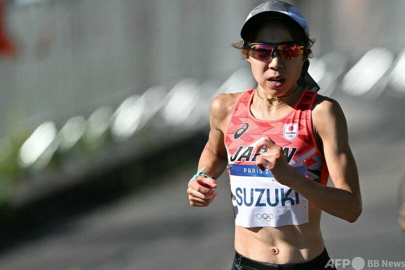 日本勢は鈴木優花(Yuka Suzuki)が2時間24分2秒で6位入賞を果たし、一山麻緒(Mao Ichiyama)は2時間34分13秒で51位だった。(c)AFP/Luke PHILLIPS