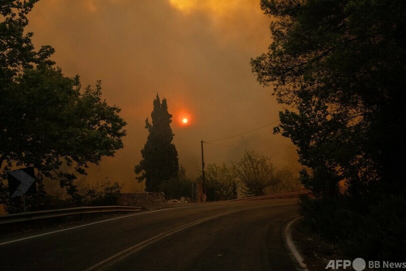 同日夜も首都アテネ近郊で発生した山火事の消火活動が続けられる中、市内の一部地区は黒い煙に覆われた。当局は、アテネの東方40キロに位置する陸上競技マラソンの発祥地マラトン(Marathon)を含め、複数の自治体の住民に避難指示を発令した。