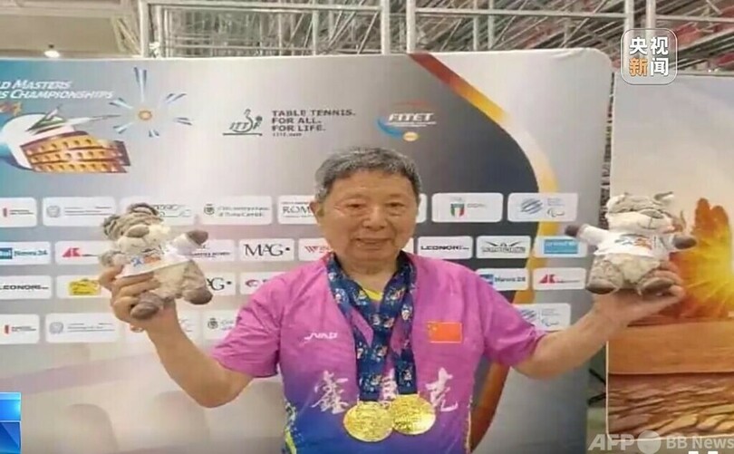 84歳の中国男性、世界卓球マスターズ選手権で金2銀1 100歳まで現役続行