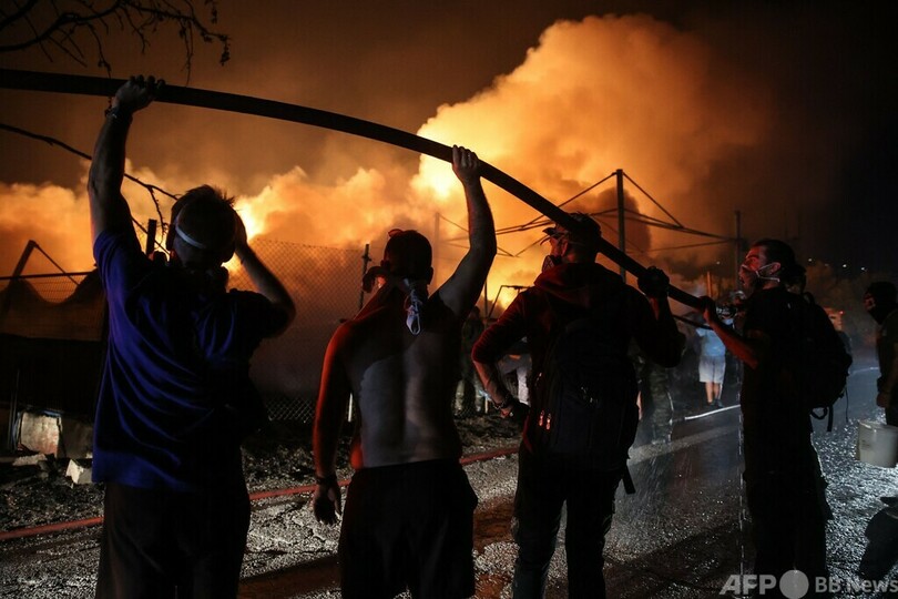 アテネ通信社(ANA)によると、13日早朝には今回の山火事で初めて死者が確認された。アテネで工場の焼け跡から発見された遺体は、60歳前後の女性とみられている。(c)AFP