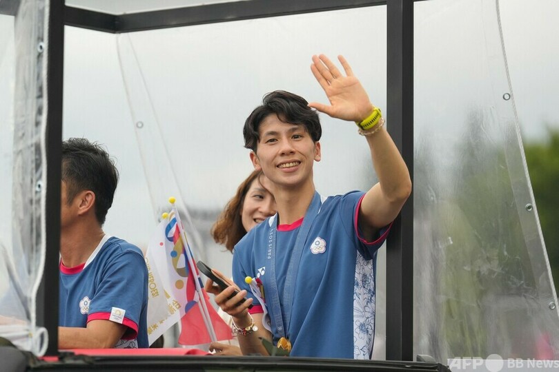 台北市内ではこの日、林や他の五輪メダリストをオープントップの車に乗せて「英雄パレード」が行われ、大勢のファンが通りに押し寄せた。台湾は今大会で金2個、銅5個の計7個のメダルを獲得し、五輪で過去2番目の成績を収めた。(c)AFP
