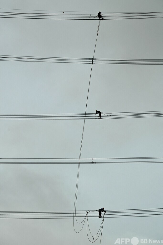ニュース ライフ 今日の1枚 【今日の1枚】空中散歩?送電線で作業する「ラインマン」 インド 2024年8月21日 12:15 発信地:ジャイサルメール/インド [ インド アジア・オセアニア ] このニュースをシェア ‹ › ❮ 2/4 ❯ インド・ラジャスタン州ジャイサルメール近くで、鉄塔に架かる高圧送電線の作業する技術者(2024年8月6日撮影)。(c)Idrees Mohammed / AFP 画像作成中 ! 【8月21日 AFP】インド・ラジャスタン(Rajasthan)州ジャイサルメール(Jaisalmer)近くで、鉄塔に架かる高圧送電線の作業をする技術者。(c)AFP ライフ 一覧へ> メディア・報道関係・法人の方向け 写真・動画 購入のお問合せ>