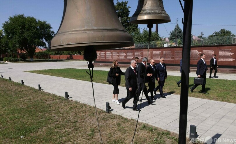 プーチン氏はこの日、占拠事件が起きた北オセチア共和国ベスラン(Beslan)の学校の跡地や墓地を約20年ぶりに訪れ、犠牲者を追悼した。