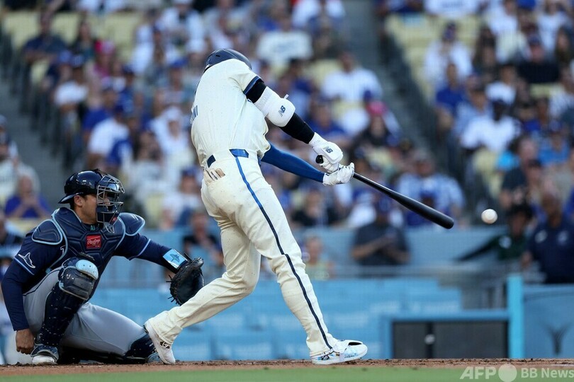 【8月25日 AFPBB News】米大リーグ(MLB)は24日、各地で試合が行われ、ロサンゼルス・ドジャース(Los Angeles Dodgers)の大谷翔平(Shohei Ohtani)はタンパベイ・レイズ(Tampa Bay Rays)戦に1番・指名打者(DH)で先発出場し、5回の第3打席に41号2点本塁打を放つなど、4打数2安打2打点を記録した。