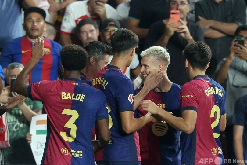 【8月28日 AFP】24-25スペイン1部リーグは27日、第3節の試合が行われ、FCバルセロナ(FC Barcelona)は2-1でラージョ・バジェカーノ(Rayo Vallecano)に逆転勝ちし、開幕3連勝を飾った。デビュー戦となった新加入のダニ・オルモ(Dani Olmo)が82分に決勝点を挙げた。
