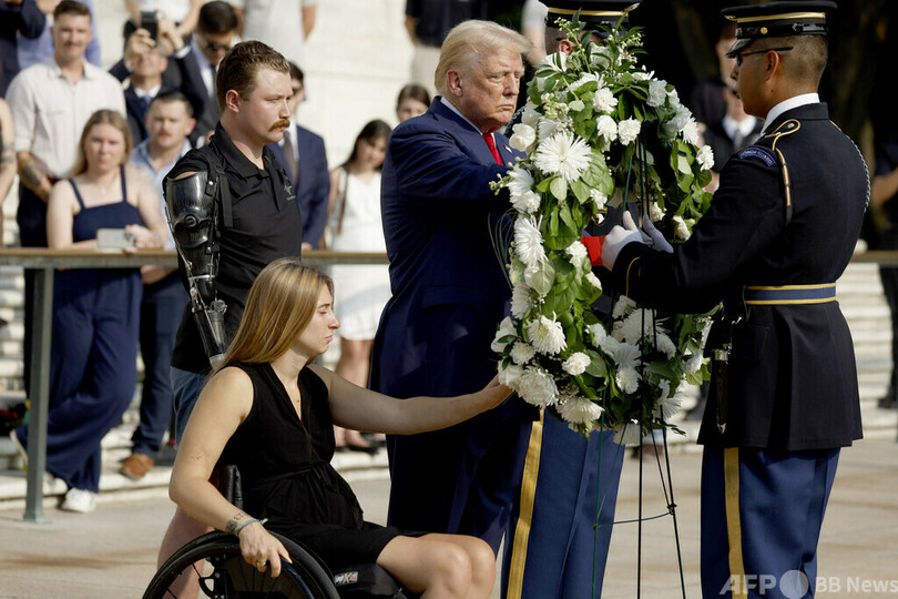 トランプ氏は、2021年にアフガニスタンから米軍が撤退する直前にカブールで死亡した兵士13人の遺族に招待され、同墓地で献花式に参列した。
