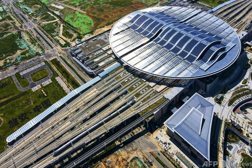 河北省(Hebei)保定市(Baoding)内にある高速鉄道の雄安駅では、駅舎屋上に太陽光発電パネル1万7700枚が敷き詰められた。年平均発電量は約580万キロワット時で、毎年標準炭1800トン分を節約し、二酸化炭素排出量を4500トン削減することができる。その効果は12ヘクタールの植樹に相当する。